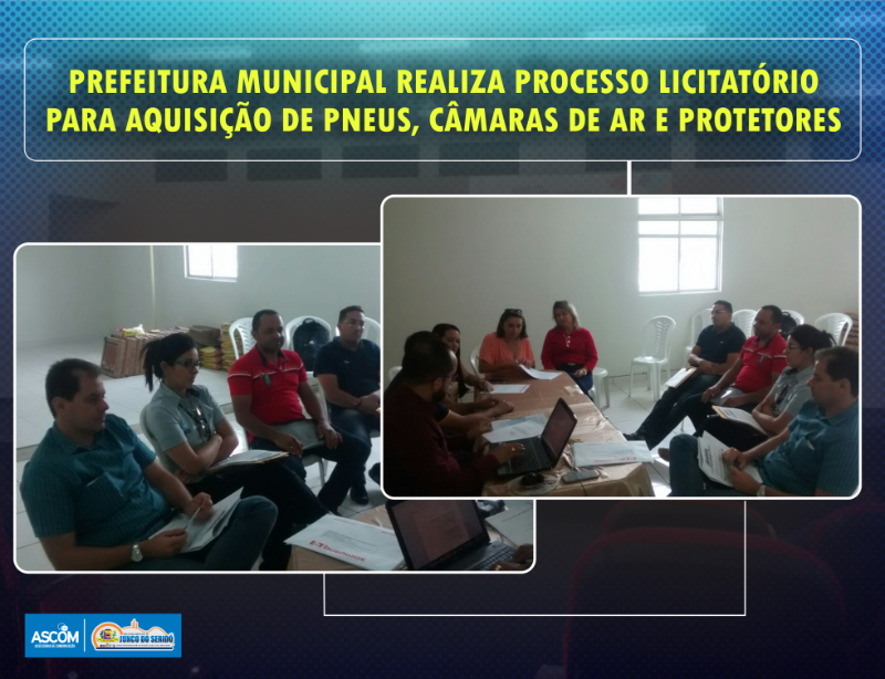 A prefeitura Municipal de Junco do Seridó, através da comissão permanente de licitações, realizou ontem (14), no auditório do CRAS – Centro de referência de Assistência Social, o processo licitatório nº 006/2017 na forma de pregão presencial de nº 003/2017, para aquisição parcelada de pneus, câmaras de ar e protetores destinados a veículos da frota pública da prefeitura municipal do Junco do Seridó-PB. Teve como participantes as empresas PNEUMAX (Campina Grande-PB), TOPPEÇAS (Caicó-RN), CHAVES PNEUS (Santana dos Garrotes-PB).