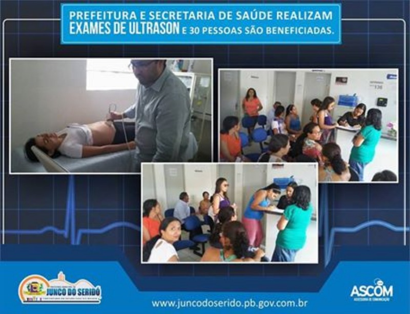 A Prefeitura Municipal do Junco do Seridó, em parceria com a secretaria municipal de saúde, realizou na última sexta-feira (17), no PSF 1, exames de ultrassonografia em diversas especialidades, obstetras, mamarias, abdominais, pélvicas, endovaginais e tireoide, ao todo 30 pacientes foram beneficiados.