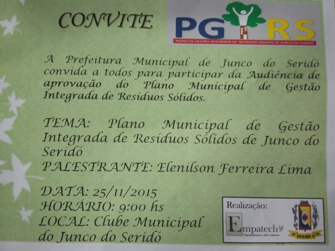 AUDIENCIA DE APROVAÇÃO DO PLANO MUNICIPAL DE GESTAO INTEGRADA DE RESIDUOS SOLIDOS.