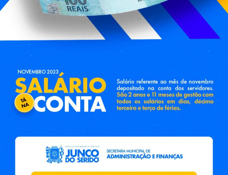O Município de Junco do Seridó reafirmou o seu compromisso com os servidores públicos ao efetuar, pontualmente nesta quinta-feira (30), o pagamento referente ao mês de novembro.