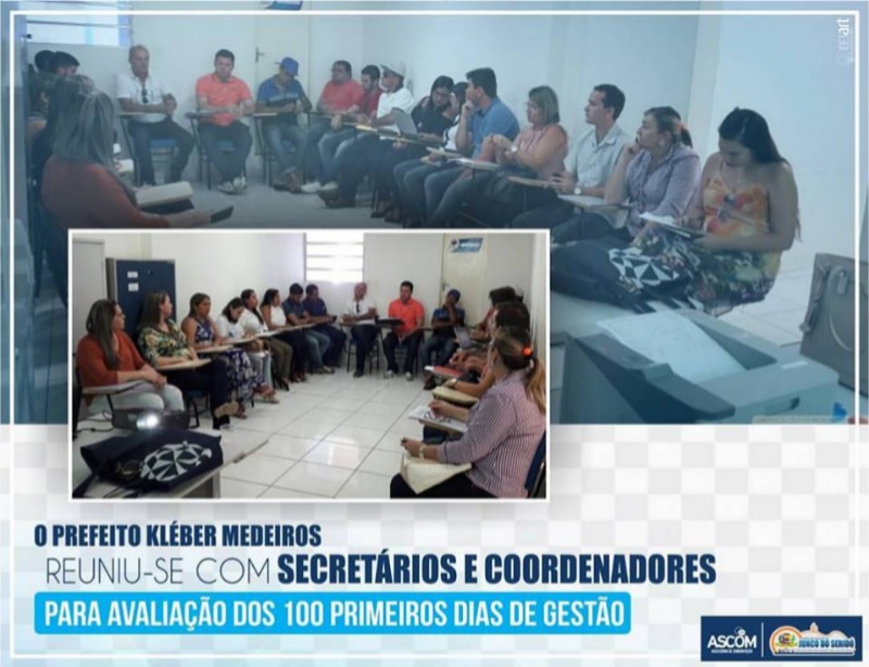O Prefeito Municipal Kleber Medeiros, reuniu na tarde desta terça-feira (04), secretários e coordenadores, para uma avaliação desses primeiros 100 dias de gestão, onde foi apresentados, relatórios trimestrais de todas as pastas e coordenadorias da administração municipal, o prefeito agradeceu a todos pela presença e em seguida abriu os trabalhos. Durante o encontro, todos puderam se pronunciar, erelataram os avanços alcançados e metas a serem atingidas no decorrer da gestão.