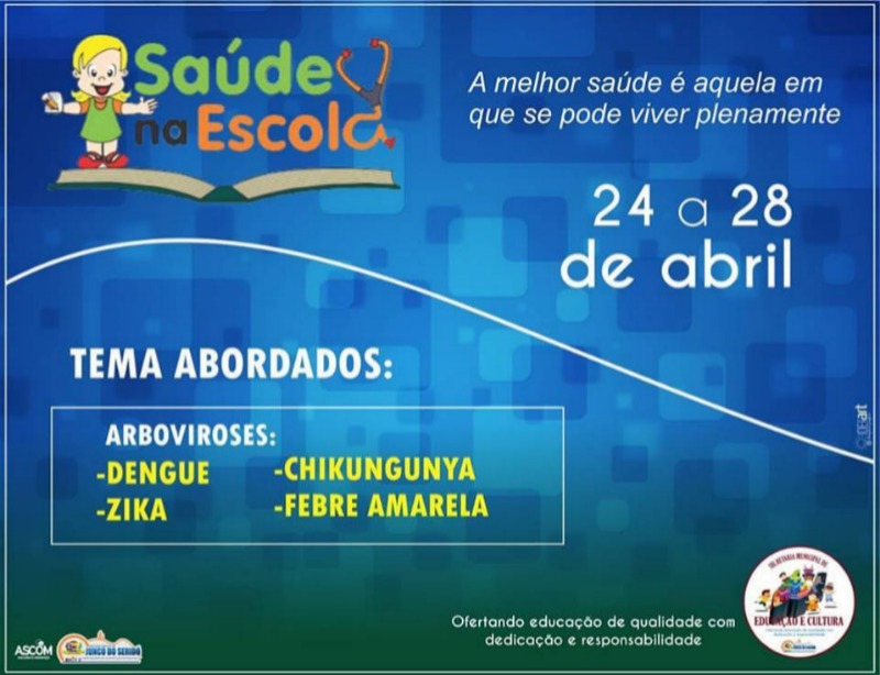 A secretaria municipal de saúde, deu inicio nesta segunda-feira (24), o Programa Saúde na Escola - PSE, e em parceria com a secretaria municipal de educação, vai realizar palestras e panfletagens, em toda rede municipal de ensino, além da escola integral cidadã Ezequiel Fernandes, e os principais assuntos discutidos são: Arboviroses (Dengue, zica, chikungunya e febre amarela), o objetivo desse evento, é levar informações de prevenção e tratamento dessas doenças que afetam diretamente a comunidade, e que se forem bem informadas, terá reduções significativas. O programa vai até o dia 28, e chegará a todas as escolas do município.
